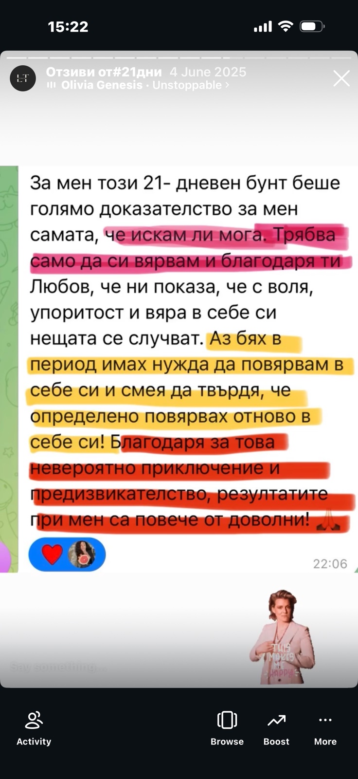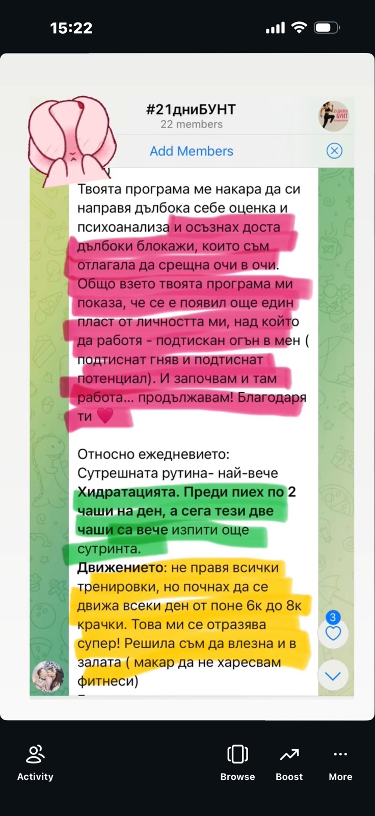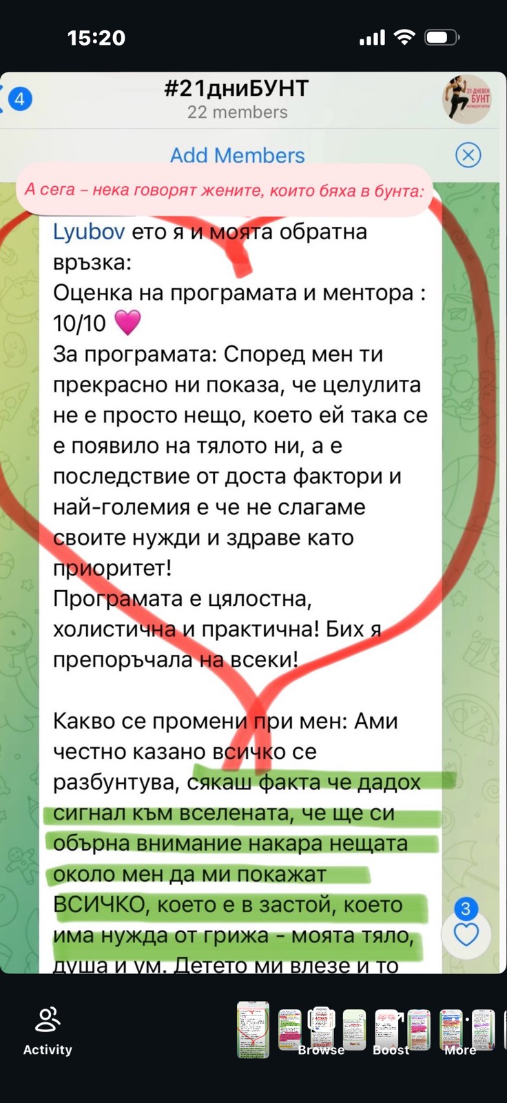 Затова има общност и разговори на живо - не си сама с pdf програма. Имаш постоянна подкрепа от жени точно като теб. Различното тук не е програмата, а че не изчезваш сама в нея.
