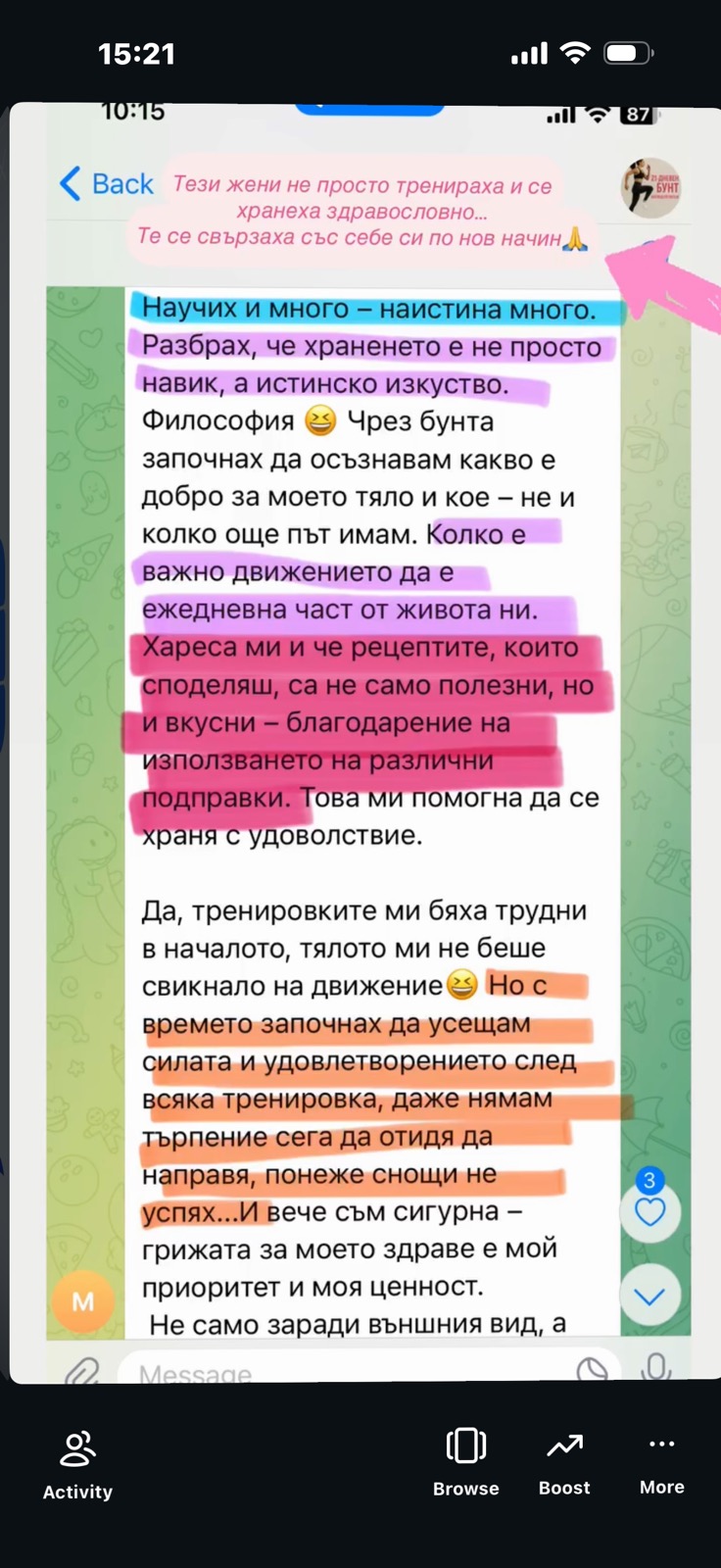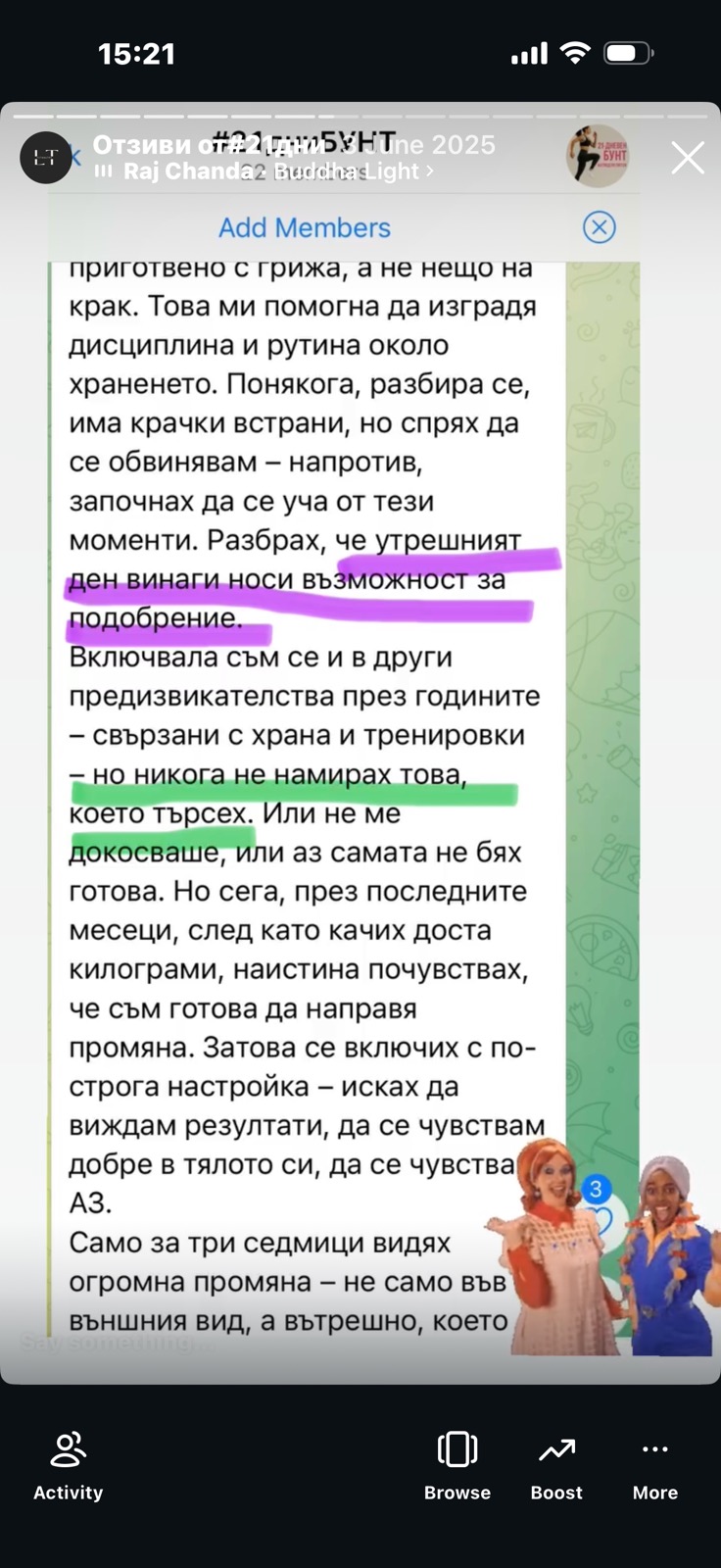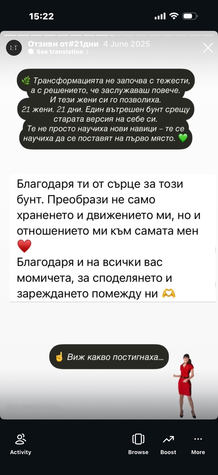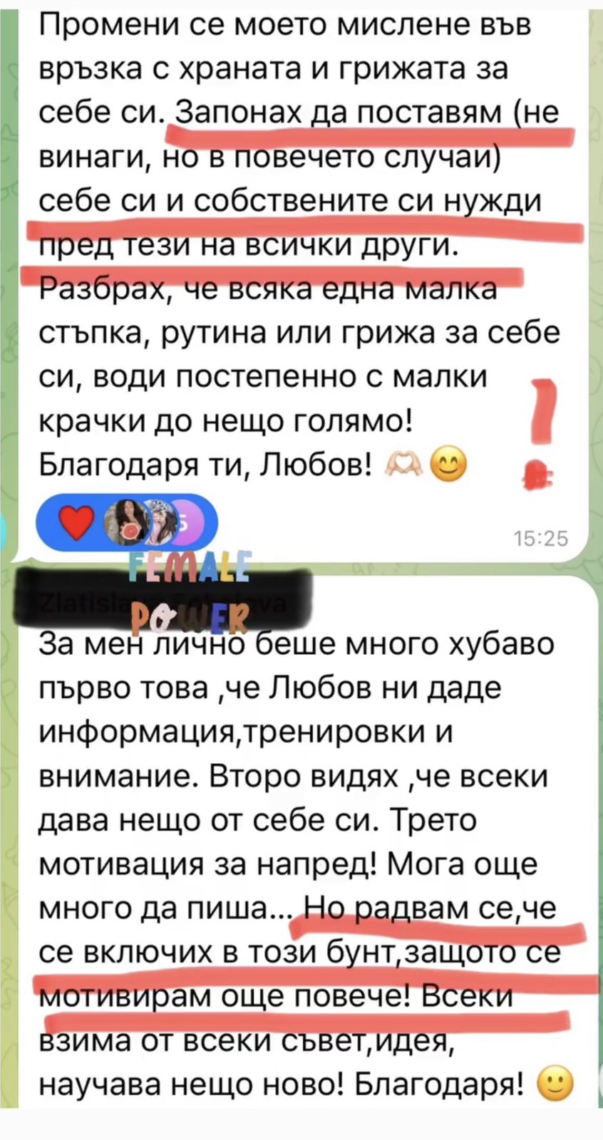 Виждаш как другите жени се борят със същите неща и успяват. Това е подкрепата, която никоя диета не ти дава.
